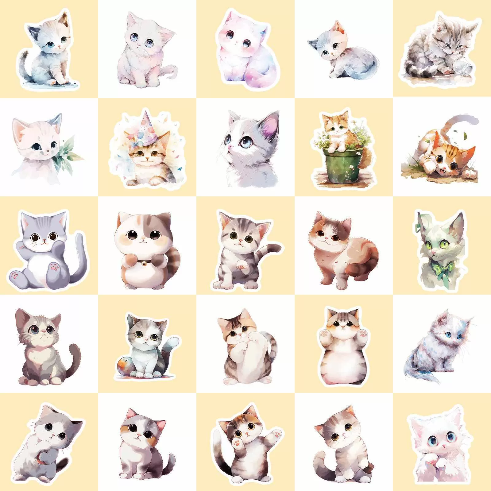 지린 50 PCS 수채화 분재 새끼 고양이 스티커, 물병용 귀여운 만화 고양이 두들 스티커, 노트북, DIY 스크랩북, 전화 케이스, 벽 아트, 홈 데코