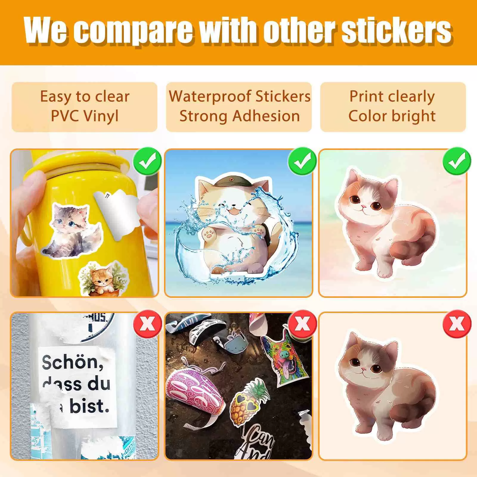 풍부한 디자인 및 프리미엄 소재: 매력적인 수채화와 분재 식물 스타일로 50개의 독특한 귀여운 고양이 스티커가 특징입니다. 내구성이 뛰어난 방수 PVC 필름으로 제작된 이 데칼은 스크래치에 강하고 바래지 않아 소지품에 오래 지속되는 진동을 보장합니다.
