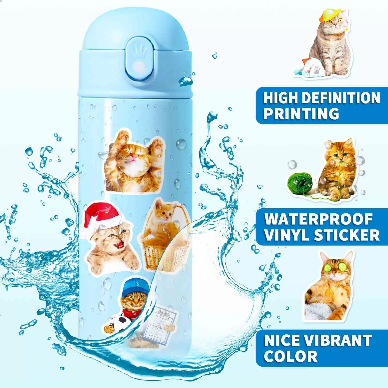 지린 50 PCS 귀여운 만화 두들 고양이 스티커, 스크랩 예약을 위한 방수 비닐 스티커 팩, 총알 저널, 플래너 장식, 노트북, 전화, DIY 공예
