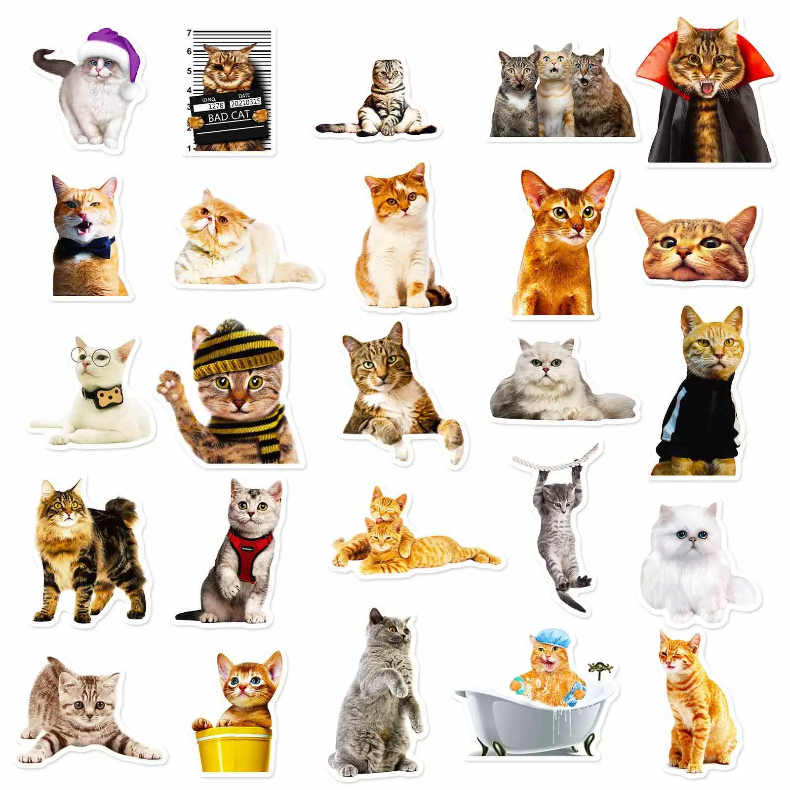 DIY 공예품을 위한 JIELEN 50 PCS 재미있는 고양이 스티커 - 귀여운 새끼 고양이 비닐 스티커 팩, 노트북을 위한 방수 데칼, 물병, 스크랩 예약, 저널, 전화 케이스