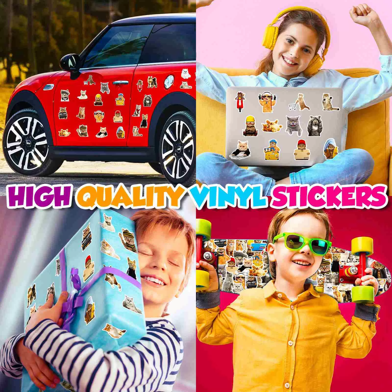 하이라이트: 50개의 독특한 디자인, 중복 없음 - 각 팩에는 50개의 재미있는 고양이 스티커가 포함되어 있습니다. 모든 고양이는 장난스럽고 기발한 자세로 포즈를 취하여 다양한 재미있는 표현과 테마를 보장하여 창의력을 발휘합니다.