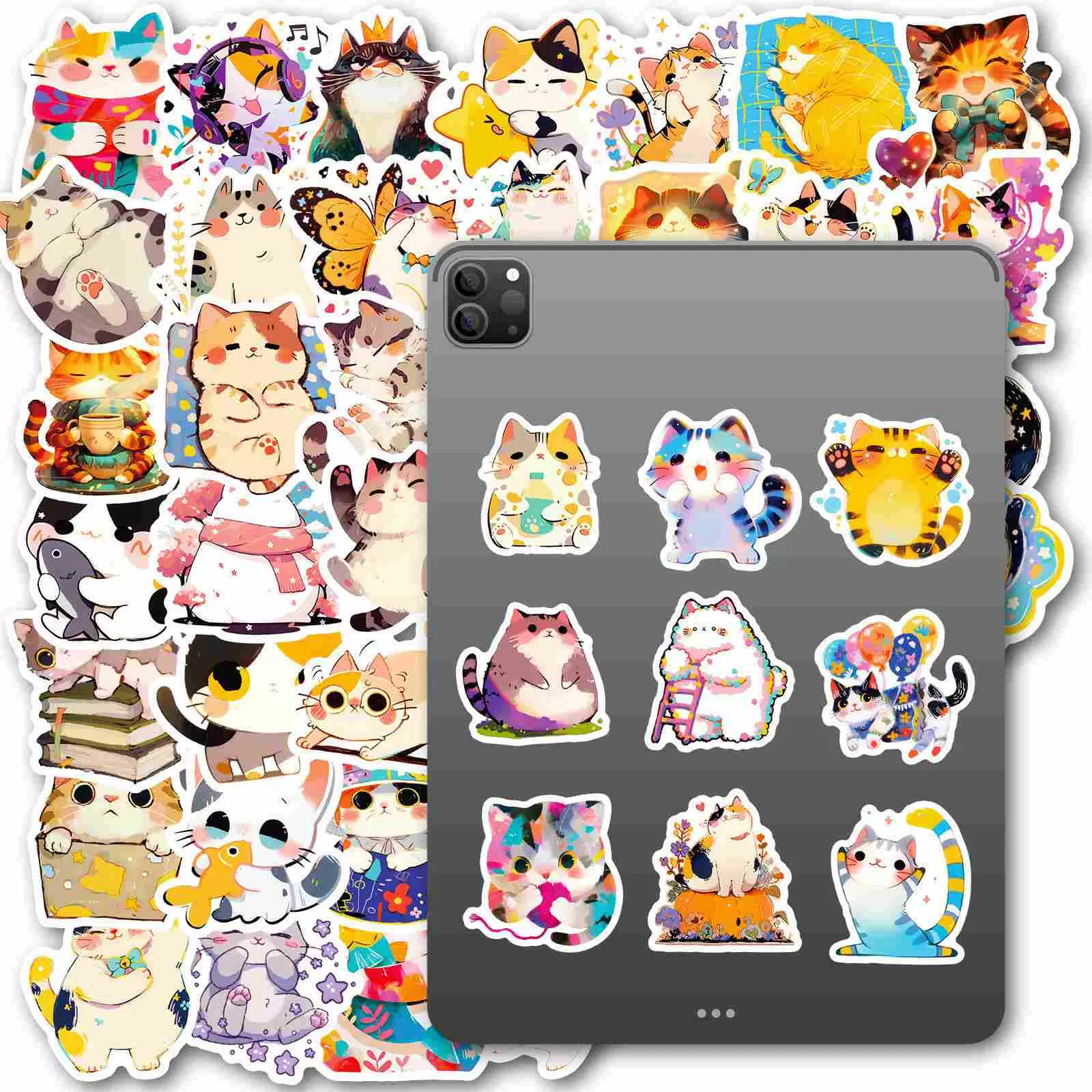JIELEN 50 PCS 사랑스러운 게으른 고양이 두들 스티커, 저널 장식용 귀여운 카와이 비닐 방수 스티커 팩, 노트북, 전화, 스크랩 예약, 플래너 액세서리