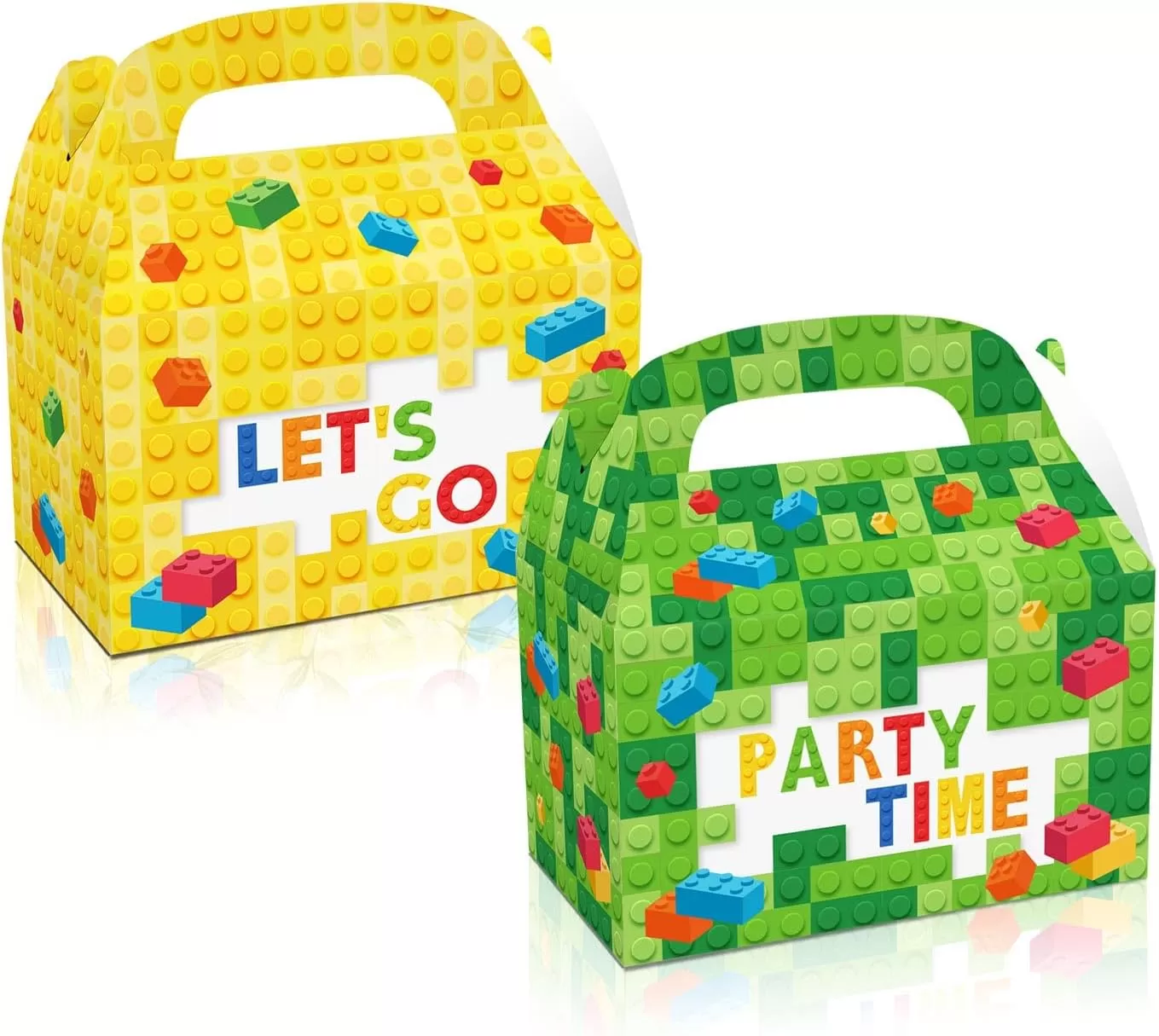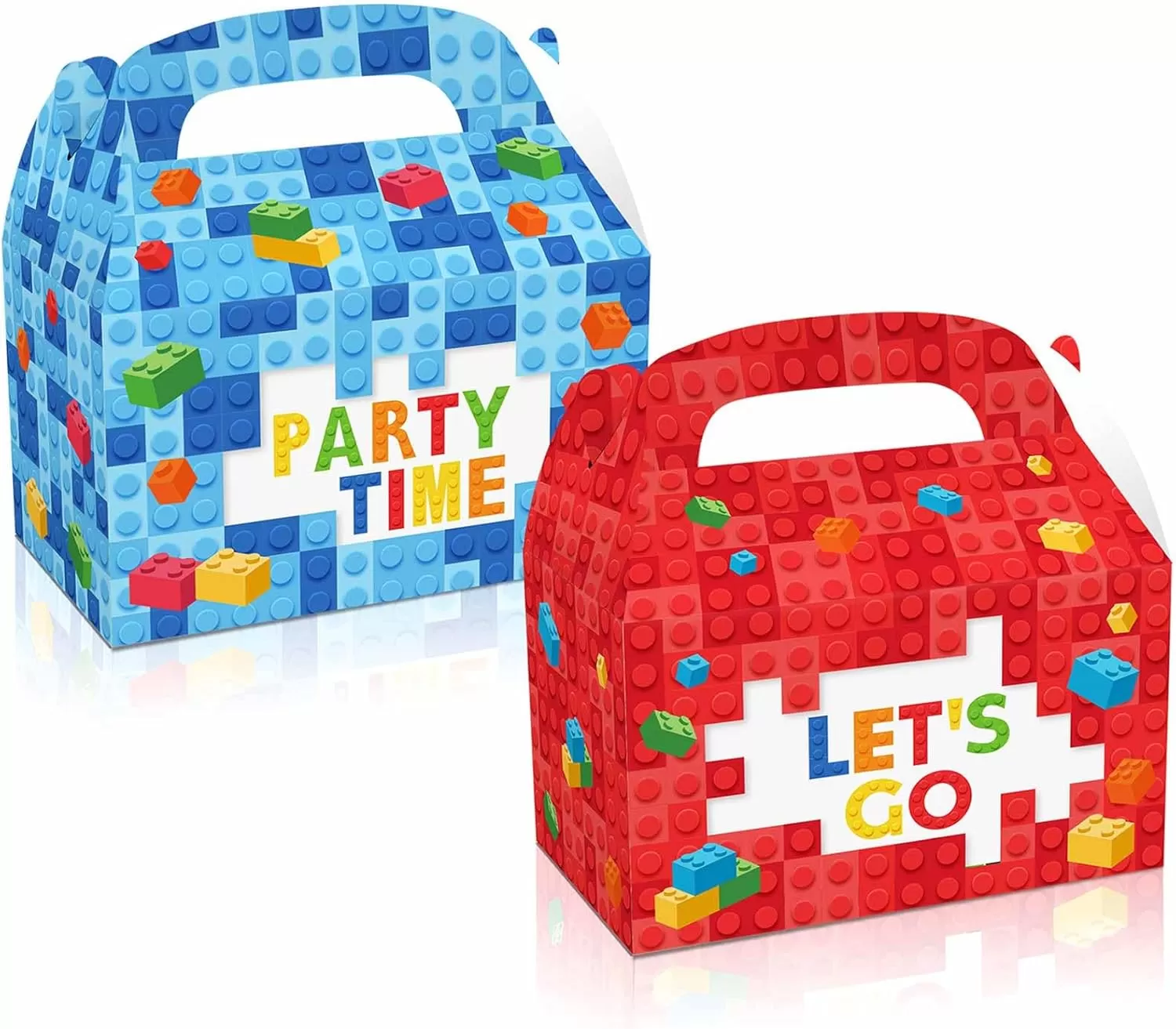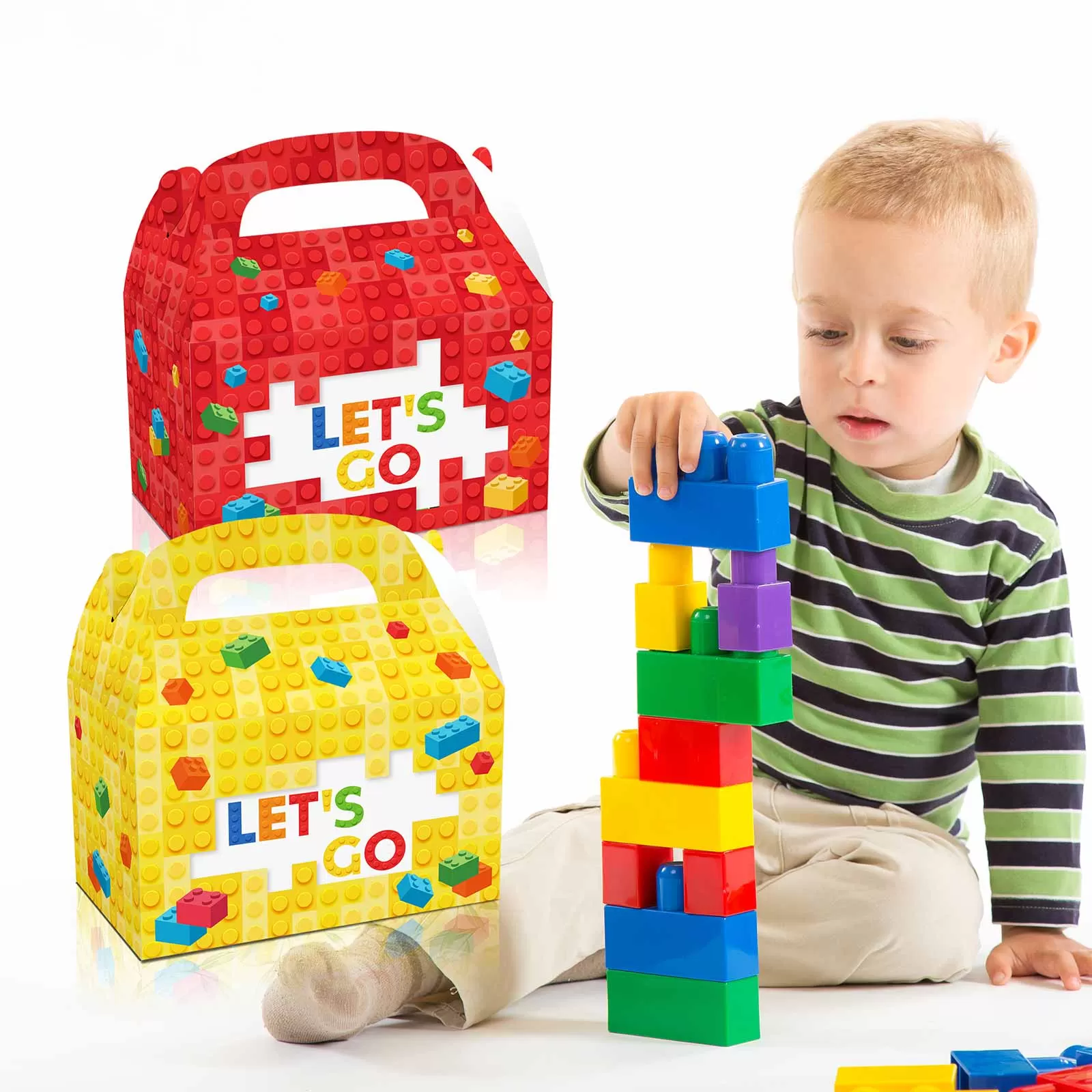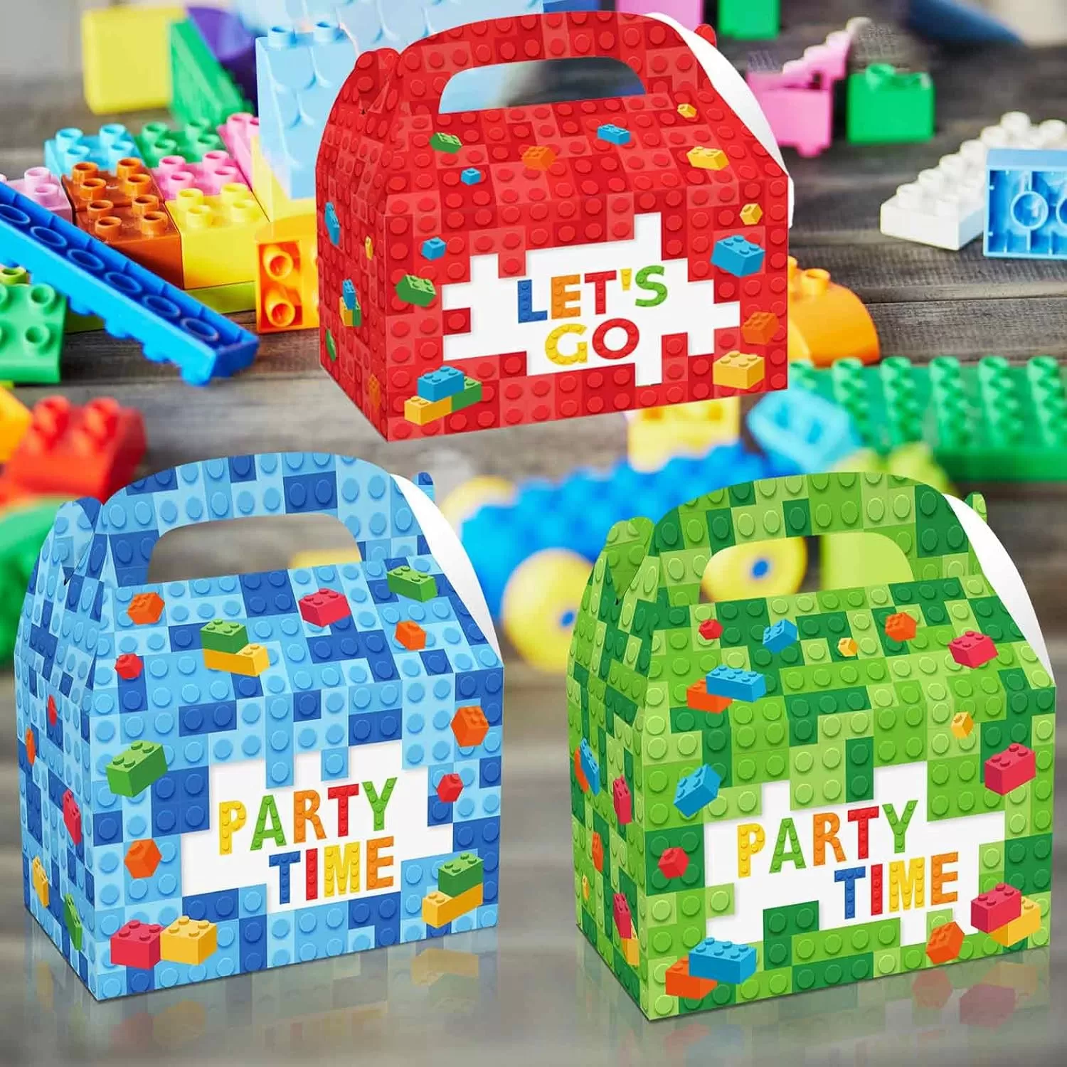 JIELEN 12 PCS 빌딩 블록 파티 트리트 박스, 종이 선물 상자, 파티 즐겨찾기 상자, 어린이용 컬러풀한 벽돌 파티 즐겨찾기 가방, 생일 베이비 샤워 용품을 위한 빌딩 블록 선물 가방