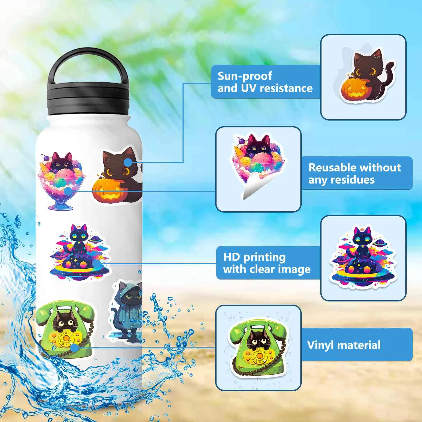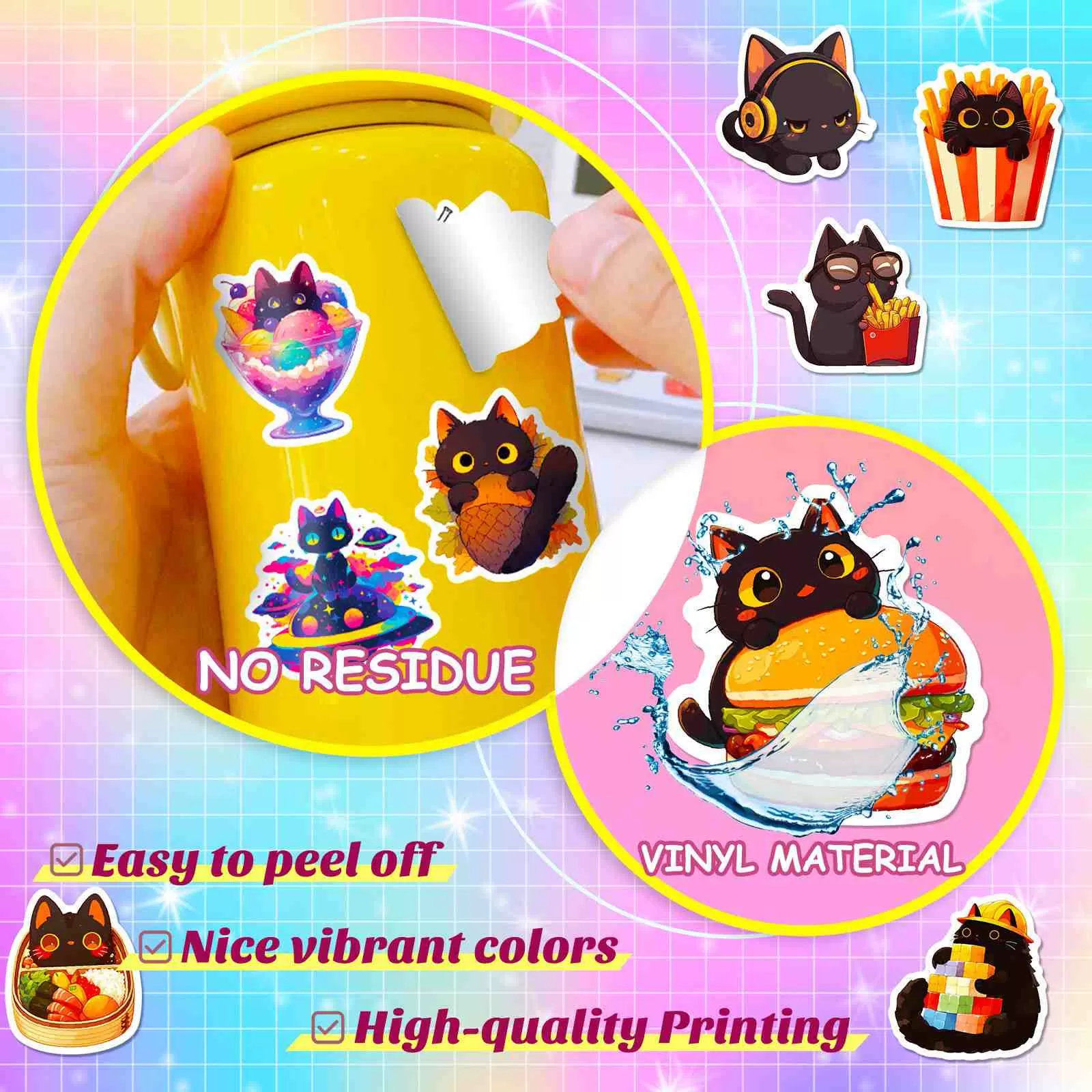 사랑스러운 디자인: 선명한 디테일이 돋보이는 귀여운 만화 검은 고양이 패턴이 특징이며, 모든 표면에 재미있고 세련된 미학을 더해 창의적인 표현을 할 수 있습니다.