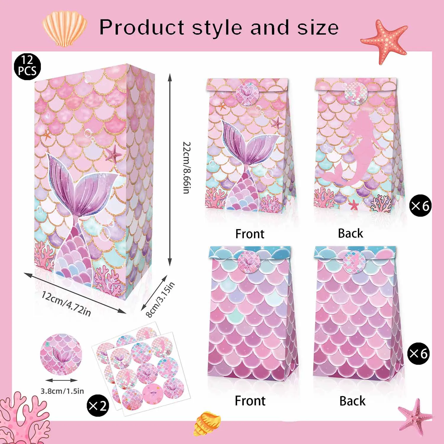 밀봉 스티커 포함: 이 패키지에는 선물 종이 가방을 밀봉하기 위한 18개의 인어 꼬리 비늘 스티커가 함께 제공됩니다. 파티에 참석한 친구들에게 감사하기 위해 그것들을 사용하세요.