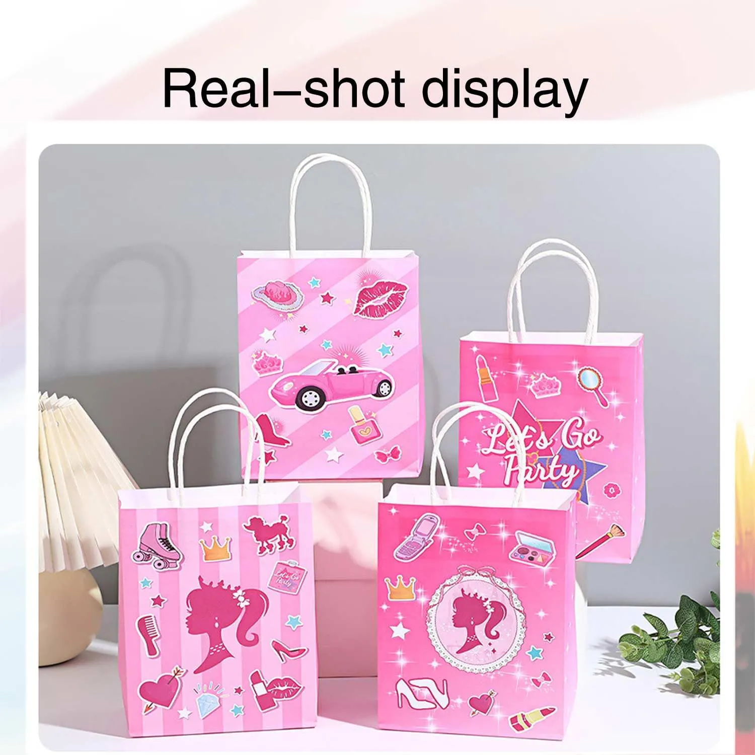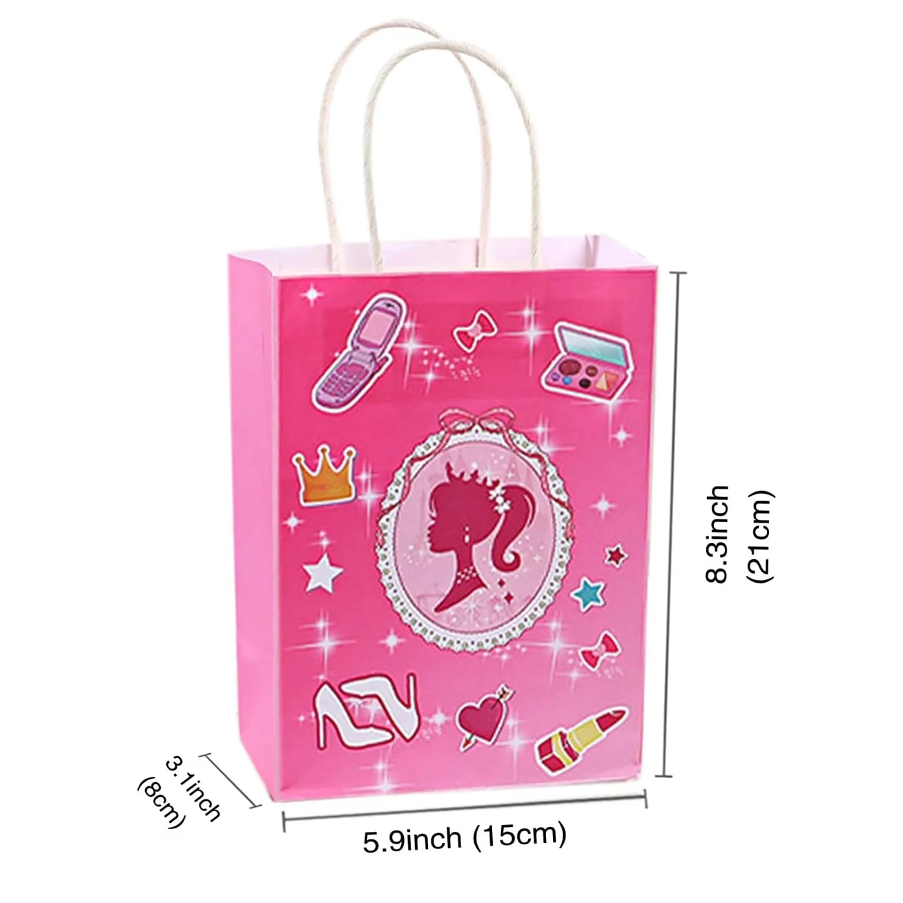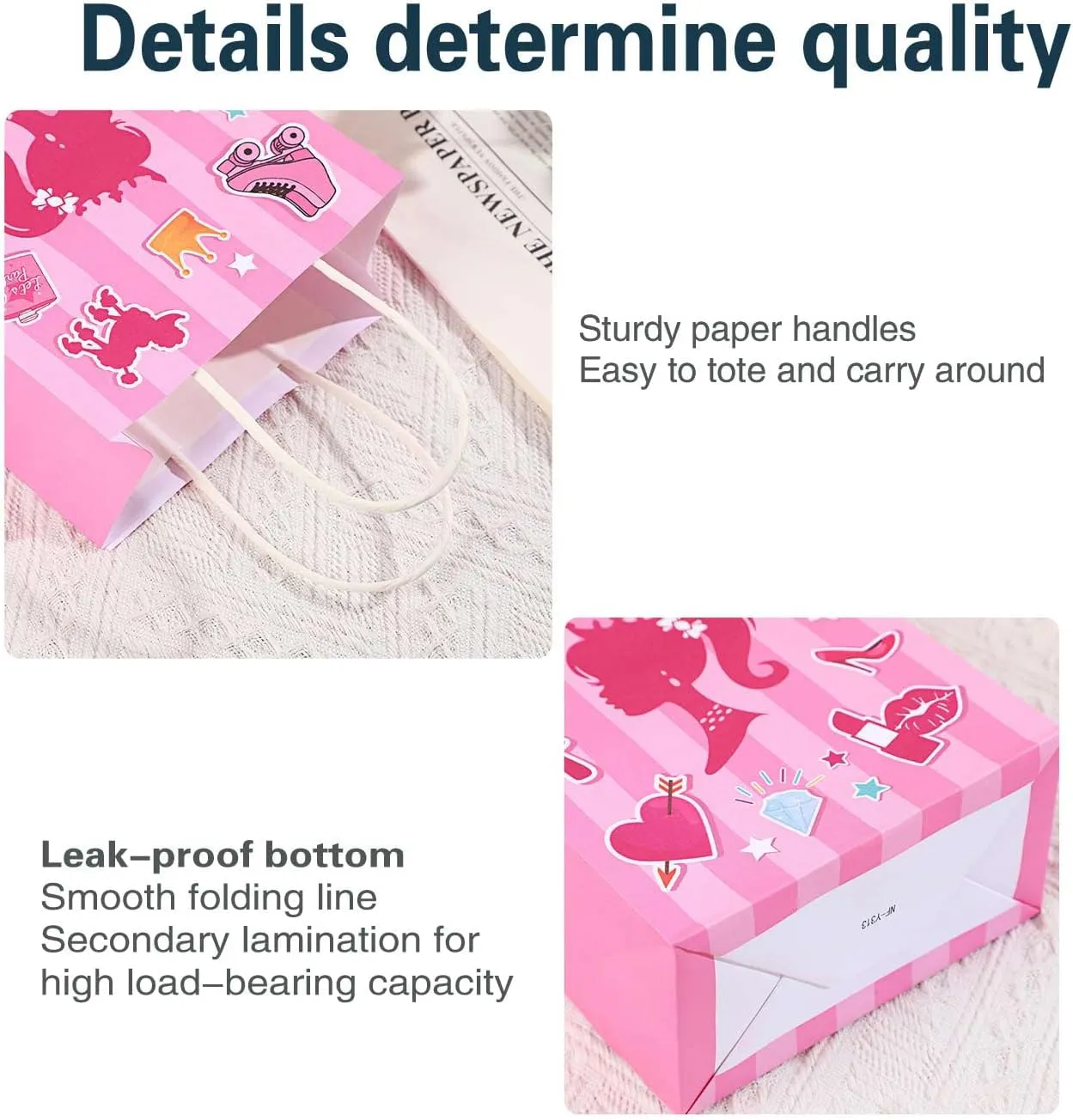 JIELEN 16 PCS 여자용 핑크 선물 가방, 공주 선물 가방, 핑크 즐겨찾기 가방, 선물 종이 가방, 쇼핑 가방, 크래프트 종이 토트백