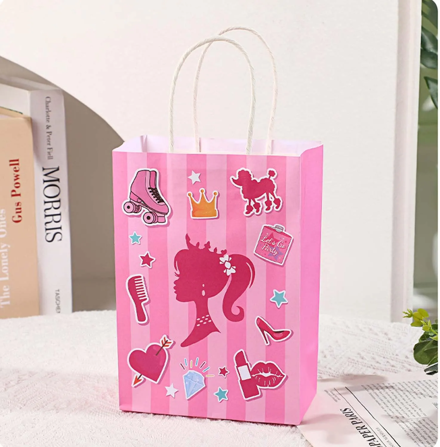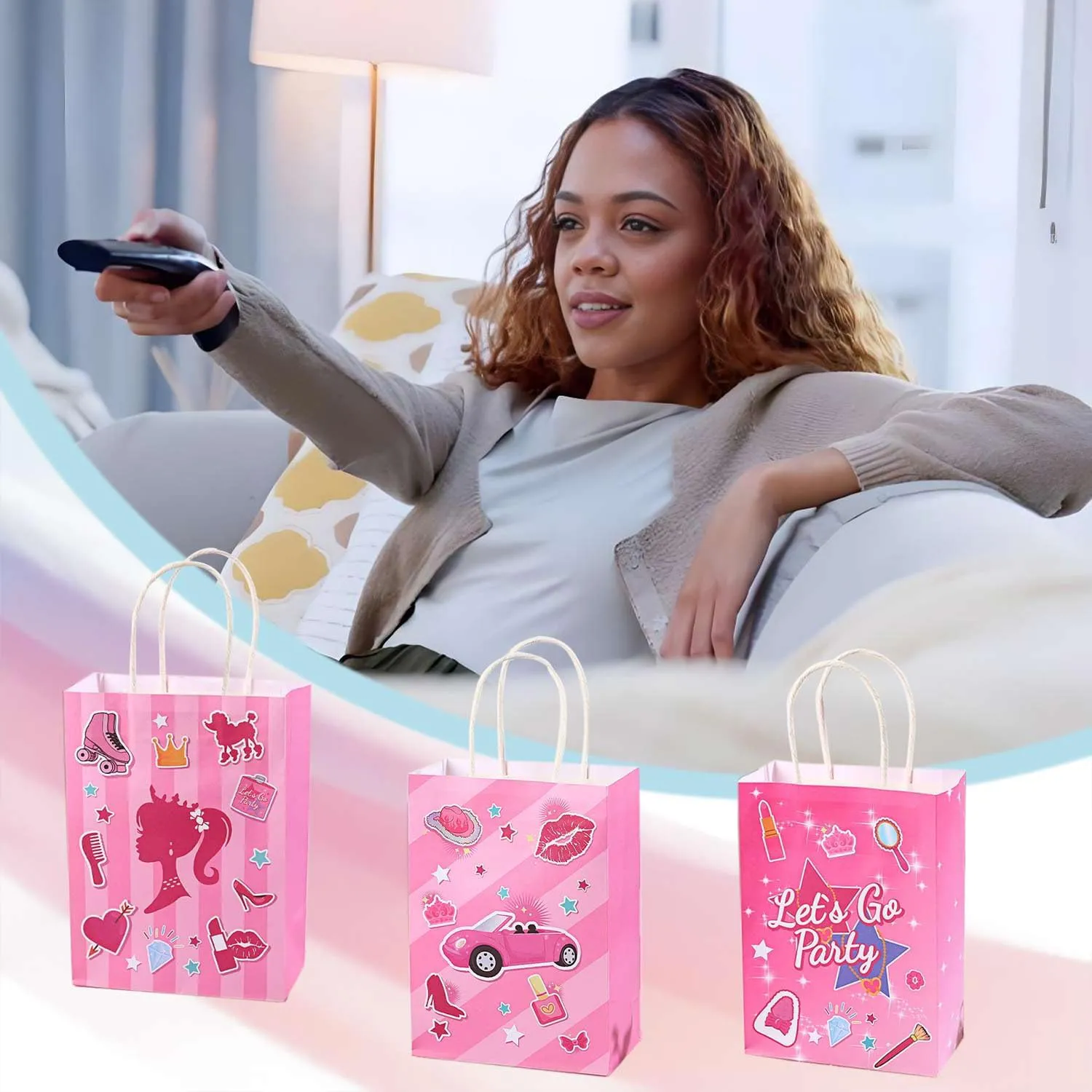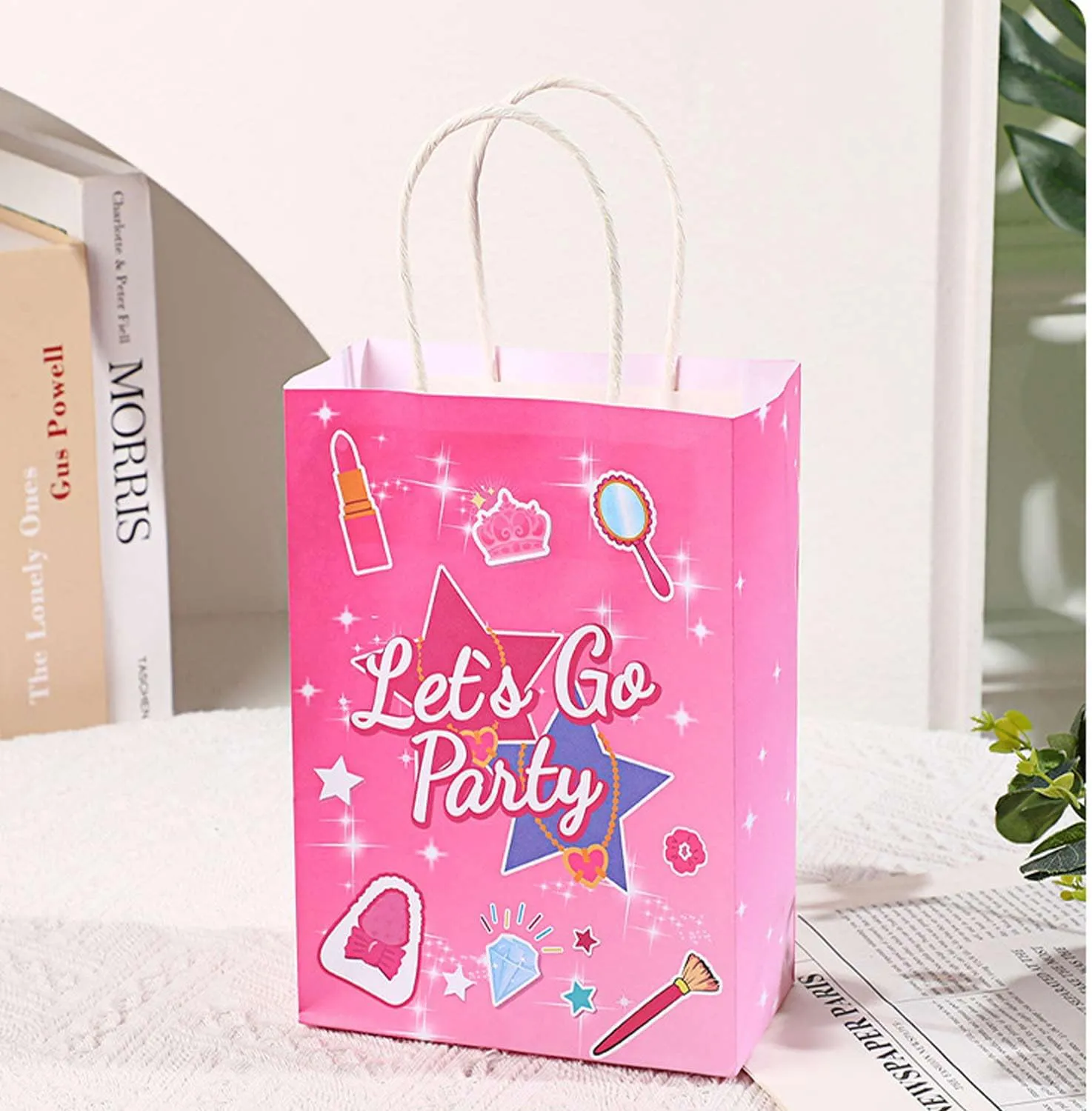 JIELEN 16 PCS 여자용 핑크 선물 가방, 공주 선물 가방, 핑크 즐겨찾기 가방, 선물 종이 가방, 쇼핑 가방, 크래프트 종이 토트백