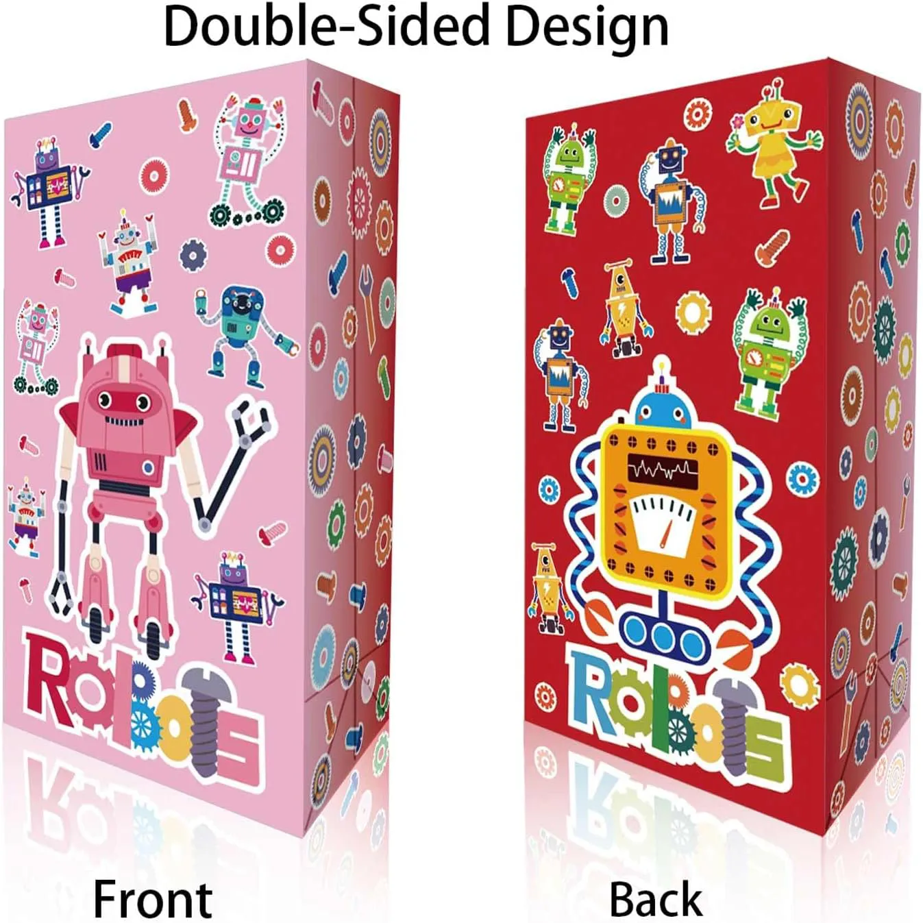 내구성 및 고품질 재료: 이 로봇 테마 선물 가방은 가방의 모양을 유지할 수 있을 만큼 두꺼운 튼튼한 고품질 크래프트 용지로 만들어졌습니다. 인쇄는 활력과 페이딩 방지로 가득 차 있습니다.