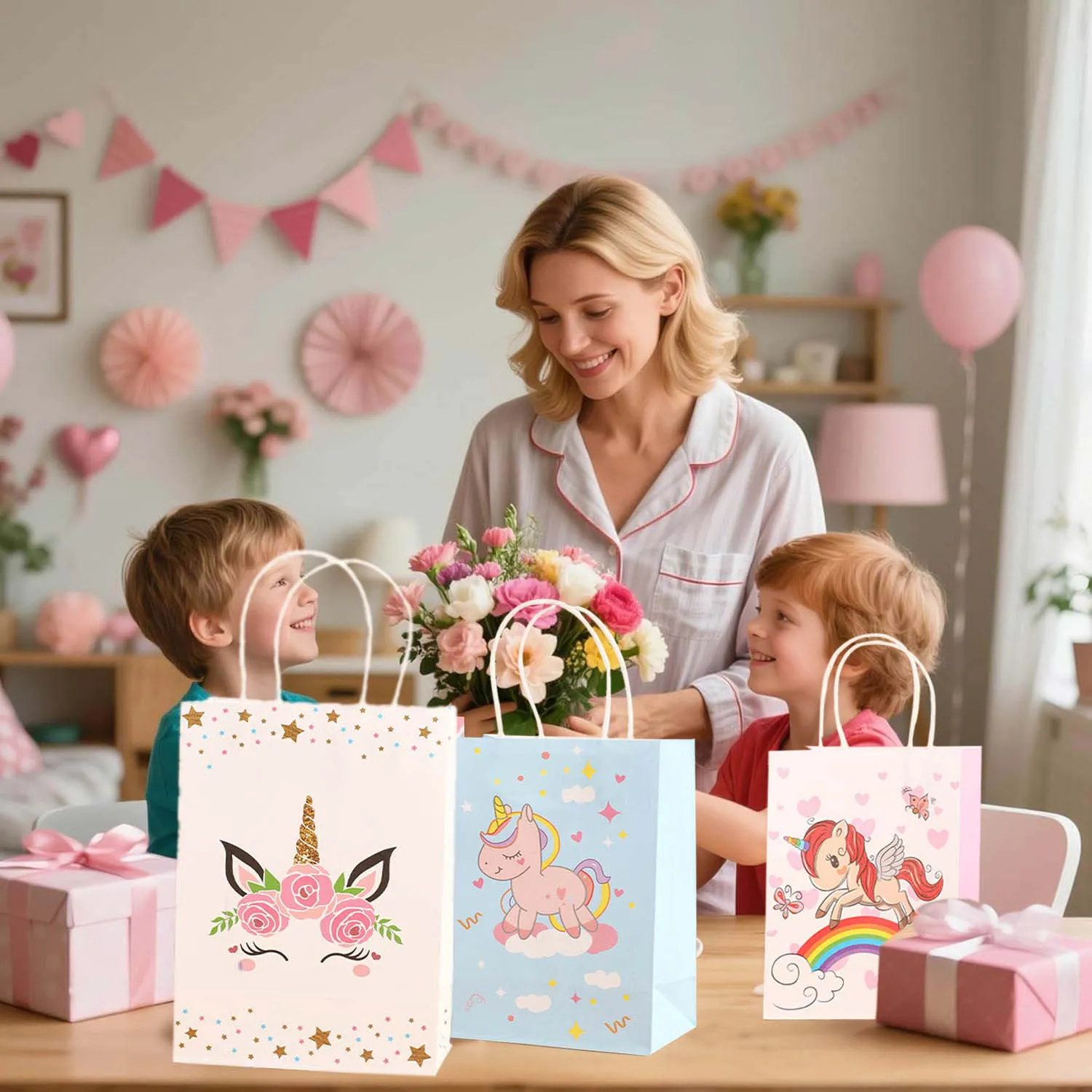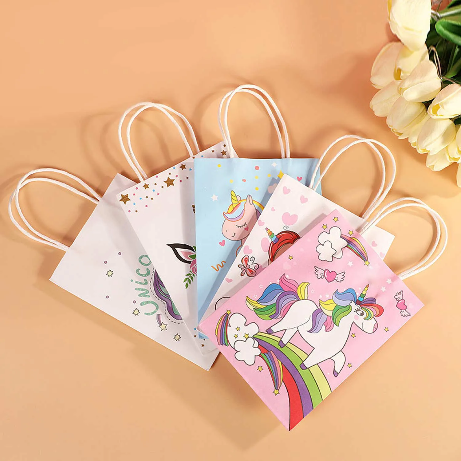 독특한 디자인: 레인보우 호스 파티 장식을 위한 선물 가방에는 5가지 패턴이 포함되어 있습니다. 레인보우 호스 생일 장식을 위한 핸들 가방은 너무 눈길을 끌고 독특합니다.